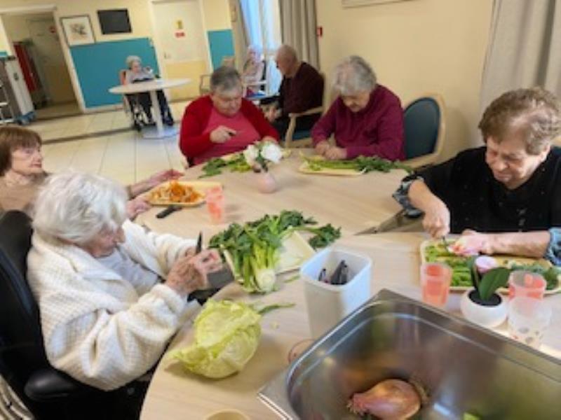 Ils ont préparé la soupe de ce soir avec enthousiasme : poireaux, céleri, patates, carottes, échalotes et même un peu de chou… un vrai arc-en-ciel de légumes ! 🥕🧅🥬🍲