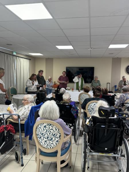 Ce mercredi après-midi, notre EHPAD a eu la visite très spéciale… du prêtre en personne ! Pas de panique, il n’est pas venu pour nous confesser tous nos secrets (même si on a quelques histoires croustillantes 😄), mais pour célébrer la messe avec nous.