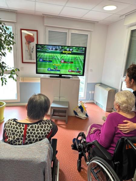 Cet après-midi, l’ambiance est sportive à la résidence : certains résidents se sont entraînés sur la Wii pour se préparer aux Olympiades qui auront lieu tout à l’heure face à la résidence des Peupliers.