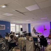Publiée le 26/09/2024Nous avons célébré en musique les anniversaires des résidents nés au mois de septembre, en présence de Philippe. Nous avons ensuite pu déguster un mille-feuille tous ensemble !!! Lire la suite