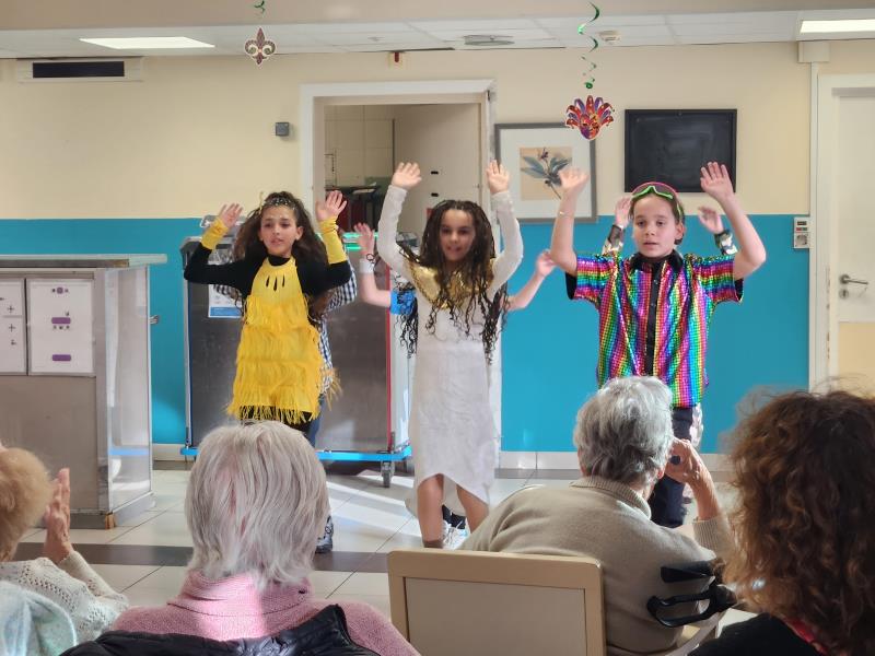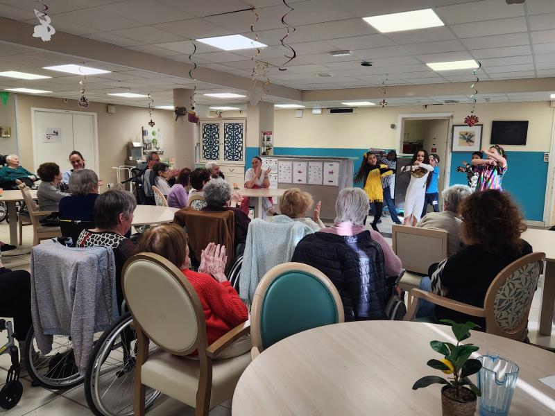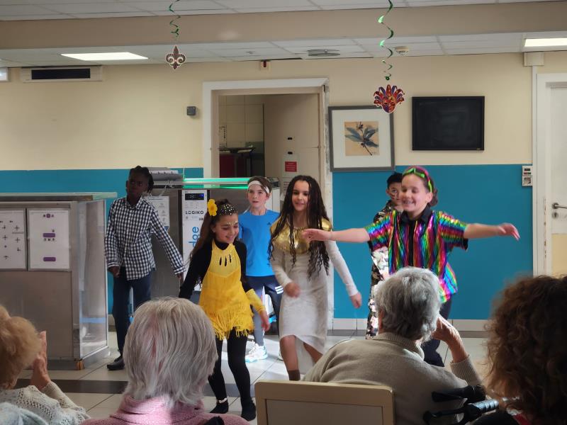 Les enfants avaient préparé un joli spectacle pour l’occasion et sont arrivés déguisés, pour le plus grand plaisir de tous. Chants, danses et rires ont rythmé cette belle rencontre. Certains résidents ont même fredonné les chansons et esquissé quelques pas de danse, dans une ambiance chaleureuse et festive.