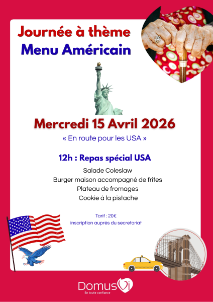 Le Bocage organise un repas à thème le Mercredi 15 Avril 2026 à midi 🍽️✨.
