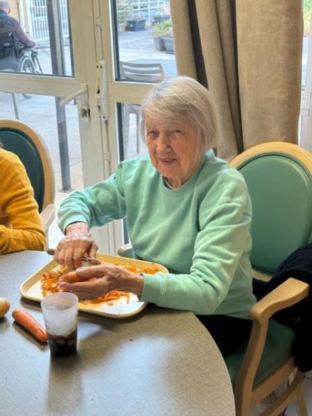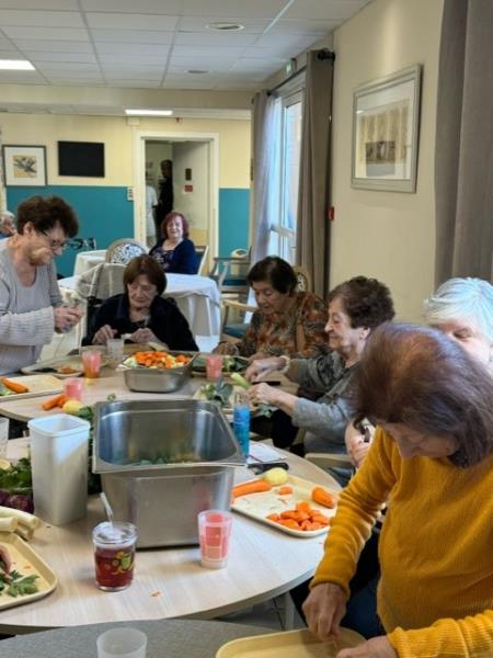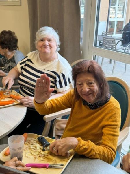 Ce matin, les talents cachés de nos chefs en herbe se sont révélés… armés de leurs couteaux (sous haute surveillance bien sûr !), nos résidents ont découpé carottes, poireaux et pommes de terre pour préparer une soupe maison pleine de saveurs et de bonne humeur.