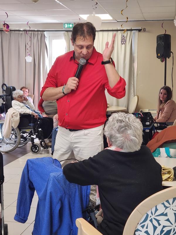 Nous avons eu le plaisir d’accueillir David, imitateur, chanteur et humoriste, venu offrir aux résidents un spectacle « carte blanche » placé sous le signe de la convivialité et de la bonne humeur.