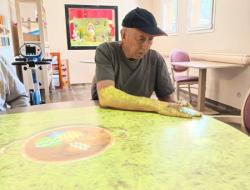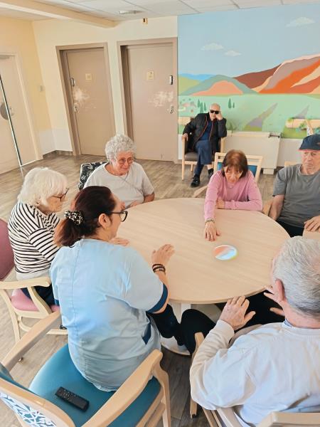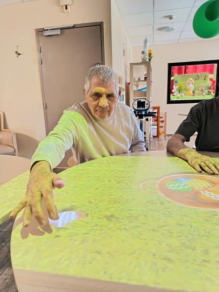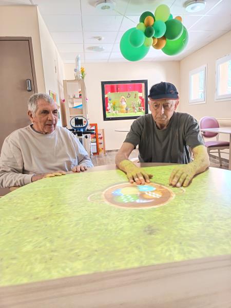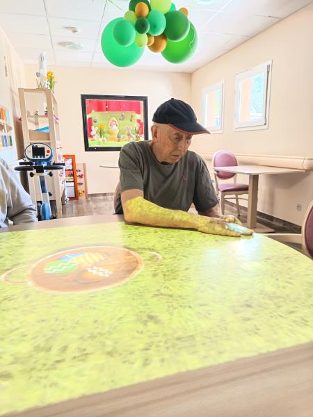 Aujourd'hui, nos résidents ont découvert (ou redécouvert) le Tovertafel, une table interactive lumineuse qui transforme de simples mouvements en jeux captivants 🤩✨
