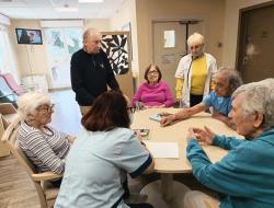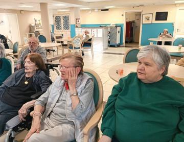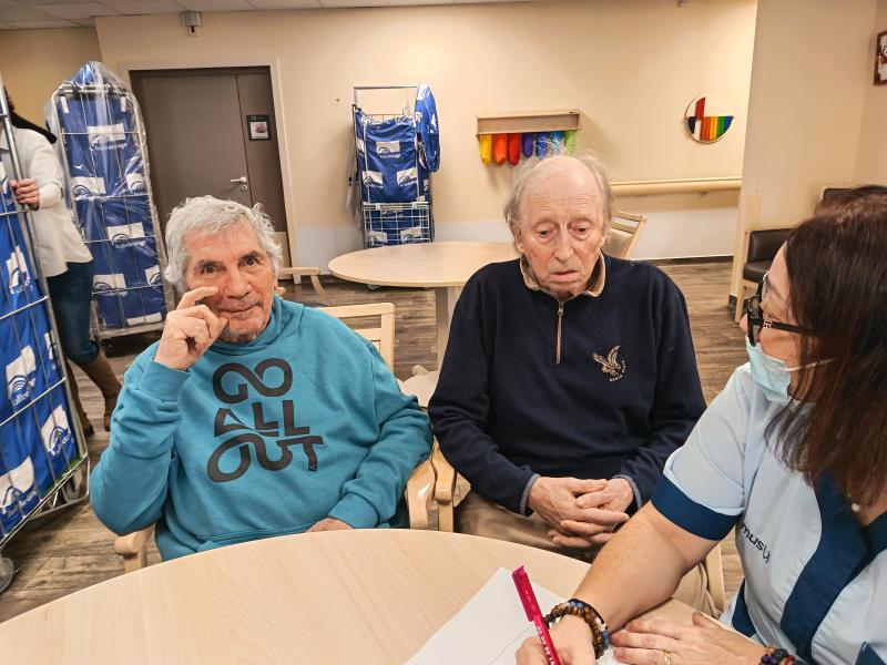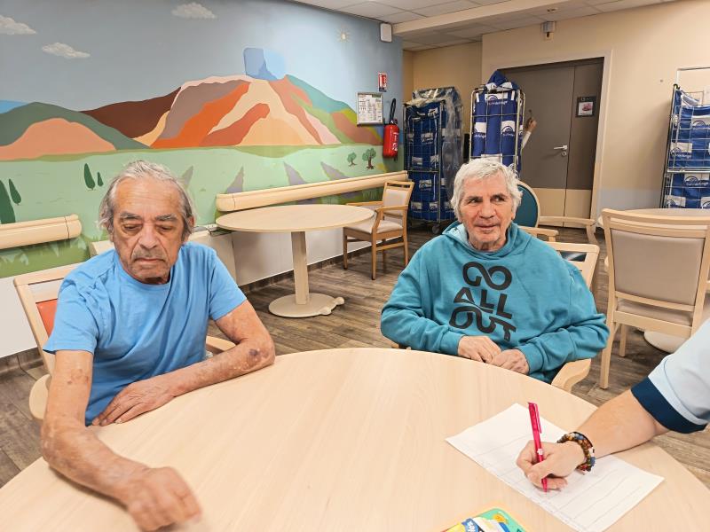Aujourd'hui, nous avons tous joué à la recherche de mots : une lettre est lancée et personnels et résidents doivent trouver un mot !!! Pas de bonne ou mauvaise réponse, juste du rire, de l'humour...